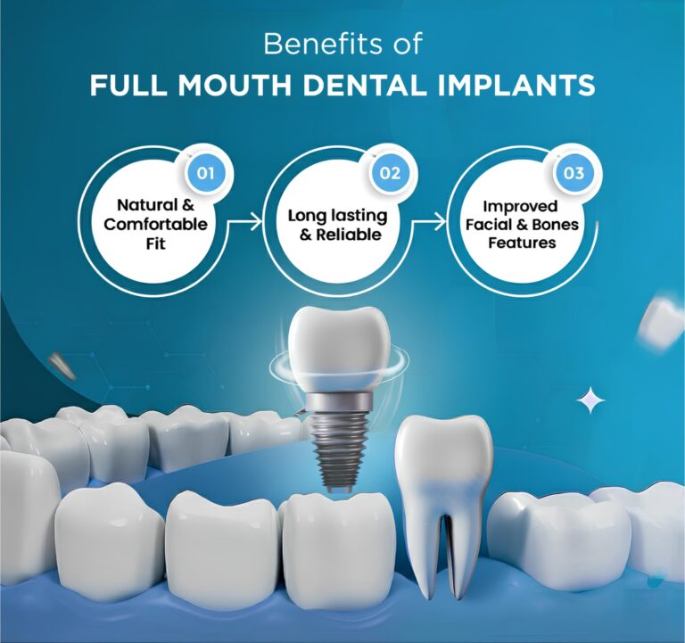 Full-mouth implants are permanently secured into the jawbone, unlike removable dentures that rest on the gums. This provides better stability, chewing power, and long-term comfort.